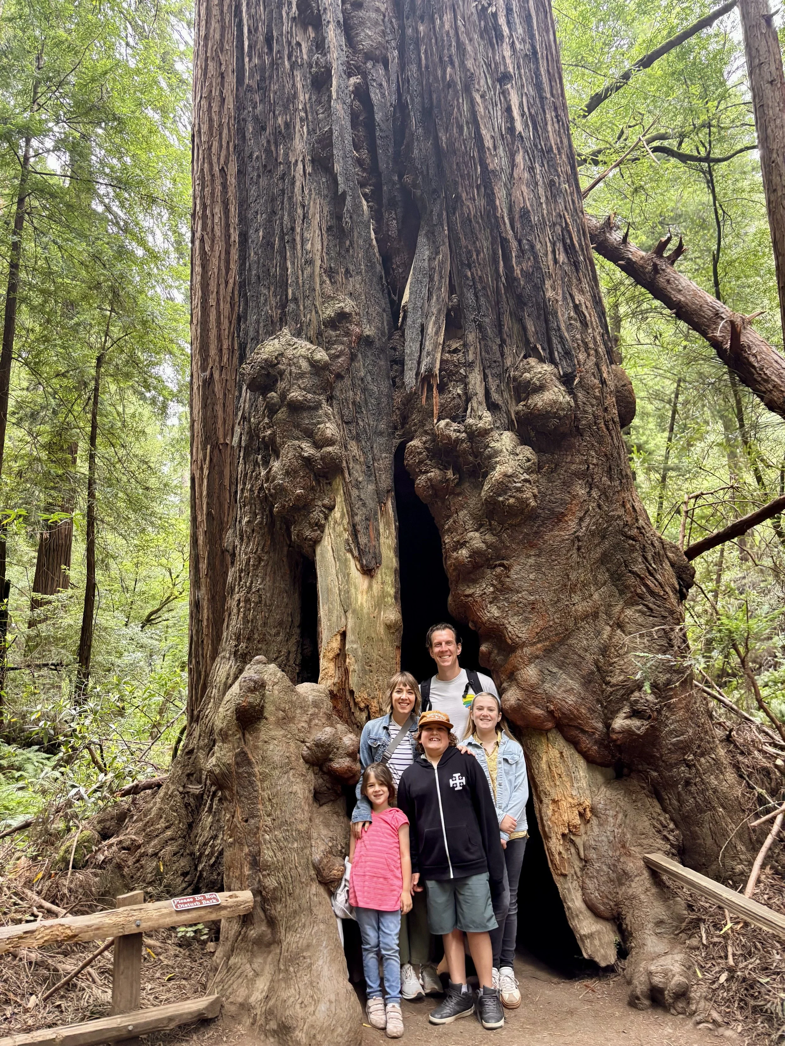 At the entrance of Muir Woods, there is a large Redwood stump on display. This particular redwood lived over 1,000 years, and some of its rings were marked, noting significant events in history.